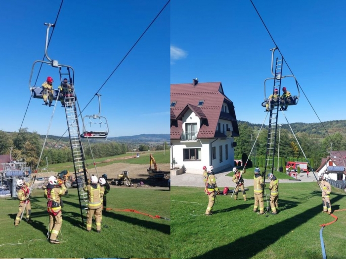 Na terenie Kompleksu Beskid strażacy ćwiczyli akcję ratunkową w przypadku awaryjnego zatrzymania kolei linowej.