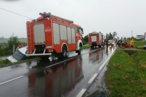 Na prostej, na drodze wojewódzkiej prowadzącej przez Rogoźnik, czołowo zderzyły się jadące z naprzeciwka samochody osobowe. Siła zderzenia musiała być bardzo duże - auta są mocno rozbite, a po uderzeniu odrzuciło je do przydrożnej fosy.