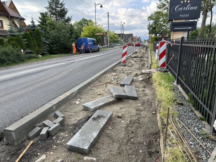- Nawierzchnia kładziona jest nawet w sobotę kiedy odbywa się duży ruch uliczny. Codziennie tworzą się potworne zatory, objazd jest trudny bo w Trybszu kończą budowę mostu i droga tam dziurawa, a inne drogi mocno zawiłe. Mało tego - nie dokończono prac związanych z chodnikiem. To, że pewne prace trzeba wykonać, nikt nie ma wątpliwości, tylko czy na pewno teraz? A gdzie jakakolwiek koordynacja? - pyta nasz czytelnik Tomasz z Białki Tatrzańskiej.Na DK49 na zlecenie GDDKiA wymieniana jest nawierzchnia drogi. - Prace związane z poprawą nawierzchni i podniesieniem nośności drogi krajowej nr 49 są sukcesywnie prowadzone odcinkami od roku 2018 - mówi Kacper Michna z GDDKiA w Krakowie. - Remont nawierzchni DK49 jest w planie remontów na rok 2023. Niestety, ze względu na długi weekend Bożego Ciała, a także igrzyska europejskie nie mogliśmy przeprowadzić robót budowlanych w czerwcu. W tym okresie staraliśmy się przede wszystkim zminimalizować utrudnienia w ruchu drogowym. Oczywiście jesteśmy świadomi, że trwa sezon wakacyjny, ale jest to również sezon prac budowlanych.Na pytanie, dlaczego tak wolno toczą się prace związane z budową chodnika - pobocze zostało rozkopane, a potem prace przerwano - mówi, że żeby przeprowadzić remont drogi robotnicy musieli na początku m.in. rozebrać stary chodnik i zbudować nowy krawężnik. Następnie, zarówno ze względów technologicznych, jak i chcąc jak najszybciej skończyć remont drogi, skoncentrowali się na pracach związanych z położeniem nowych warstw asfaltu. - W poniedziałek wznowimy remont chodnika. Potrwa on ok. 3 tygodnie - dodaje.