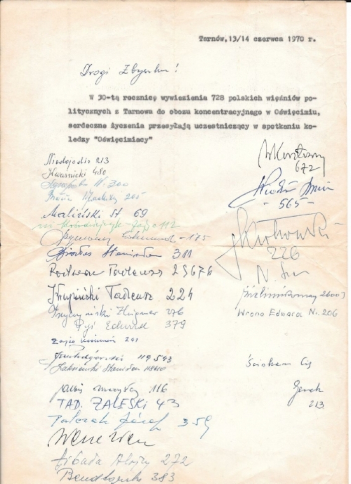 Niemiecki obóz koncentracyjny Auschwitz został założony w celu eksterminacji narodu polskiego. Za moment rozpoczęcia jego „działalności” przyjmuje się przybycie pierwszego transportu 728 Polaków przywiezionych z więzienia w Tarnowie, dnia 14 czerwca 1940 roku.