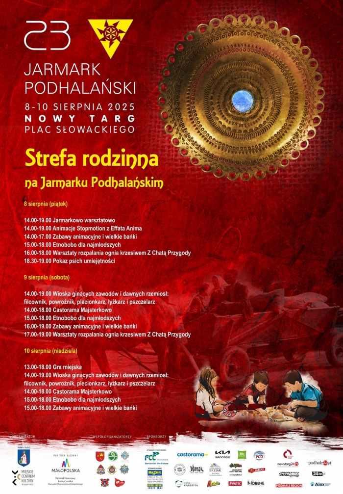 Impreza rozpocznie się w piątek o godz. 17.00 uroczystym przemarszem ulicami miasta. Na Placu Słowackiego (naprzeciwko Szkoły Podstawowej nr 1) w dniach 8-10 sierpnia (piątek - niedziela) w godz.14.00-19.00 jak co roku mieścić się będzie Strefa Rodzinna z atrakcjami dla dzieci i rodzin. W ramach trzeciego dnia 23. Jarmarku Podhalańskiego odbędzie się Popołudnie Seniora pod patronatem Nowotarskiej Rady Seniorów.
