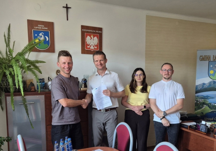 Wójt gminy Łapsze Niżne Jakub Jamróz podpisał umowy na realizację dwóch projektów wchodzących w skład czwartego etapu "Historyczno-kulturowo-przyrodniczego szlaku wokół Tatr". Łączna wartość inwestycji wynosi ponad 800 tysięcy złotych, a ich zakończenie zaplanowano na 30 listopada tego roku.