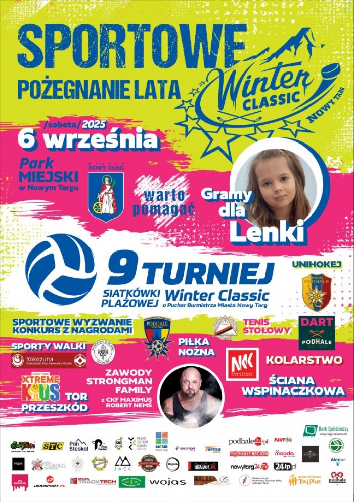Tradycją jest, że każda odsłona akcji pod znakiem "Winter Classic", czy to letnia, czy zimowa - poświęcona jest szczególnej osobie, czy rodzinie. Na przestrzeni lat pomoc skierowana była na leczenie czy rehabilitacje Marysi, Kamilki, Wiktorii, Martynki, Maksa, Liliany, Zysy, Mike, czy z rozmachem przeprowadzona akcja "dla Świderków". Tegoroczna edycja, tego sportowo-charytatywnego wydarzenia, ma na celu zebranie funduszy dla 11- letniej Lenki Cholewy, która urodziła się z wrodzoną wadą podudzia. Dziewczynce groziła amputacja nóżek. Rodzice nie poddali się i obecnie po wieloletniej walce Lenka zaczeła poruszac się o własnych siłach. Obecnie potrzebne są środki na 5 z 6 etapów leczenia.Głównym wydarzeniem jest corocznie rozgrywany - Turniej Siatkówki Plażowej o Puchar Burmistrza Miasta Nowy Targ. 9 już edycja Turnieju zostanie rozegrana na trzech boiskach.