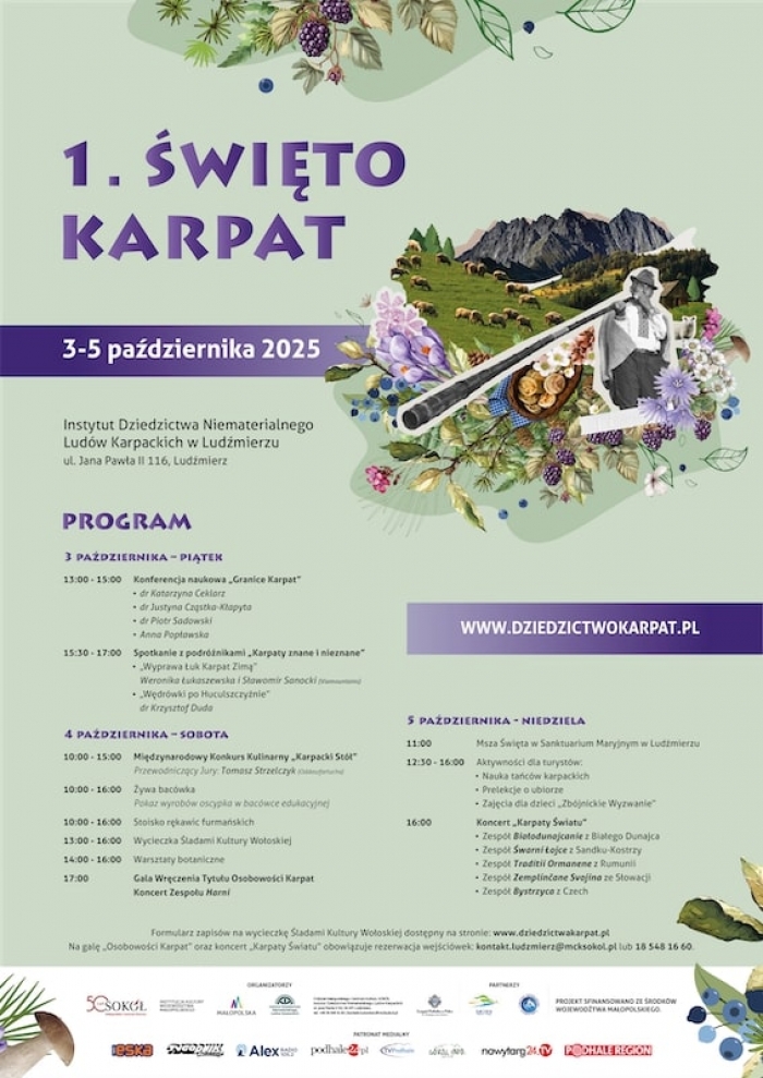 W programie znajdą się koncerty, warsztaty i konkurs kulinarny. Odbędzie się również wyprawa śladami kultury wołoskiej, pokazy rzemiosła pasterskiego oraz spotkania z podróżnikami. To propozycja zarówno dla miłośników górskich wędrówek, jak i pasjonatów historii, folkloru i lokalnej kuchni.Organizatorem wydarzenia jest Małopolskie Centrum Kultury SOKÓŁ w Nowym Sączu oraz Związek Podhalan w Polsce.