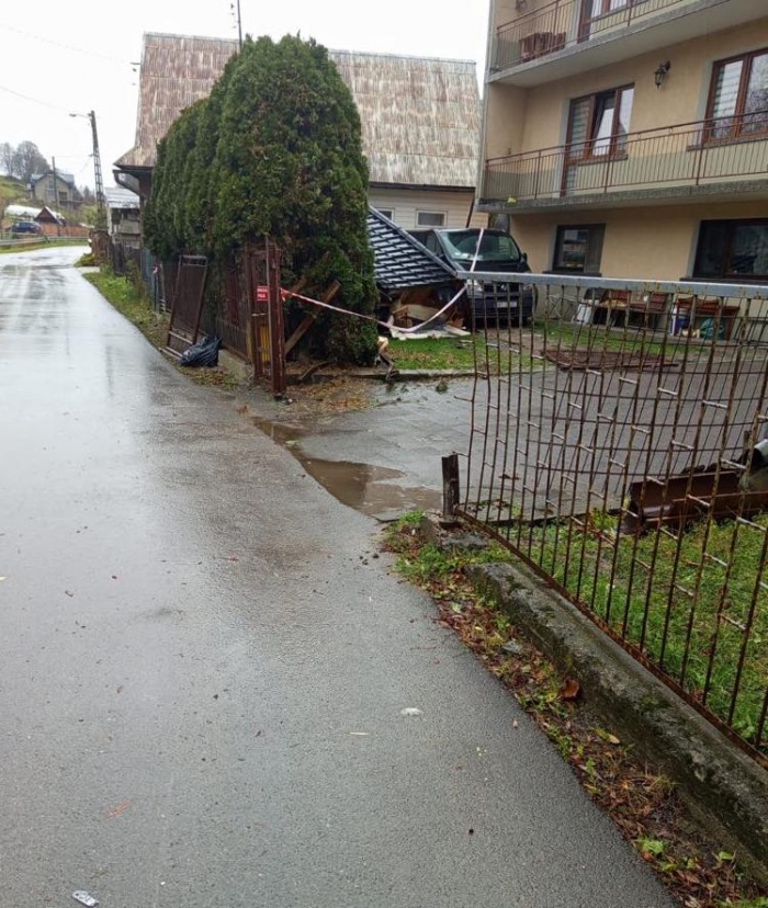 NOWY TARG. Około godz. 3 w nocy samochód prowadzony przez 40-letnią kobietę wypadł z drogi, staranował bramę wjazdową na prywatną posesję i wjechał do ogródka niszcząc m.in. altankę ogrodową.