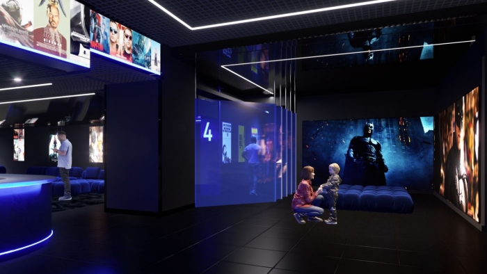 Z tyłu widać opuszczoną windę na projektor. W nowoczesnym kinie nie ma kabiny dla operatora. To już nie te czasy, gdy operator musiał nawijać analogową taśmę między szpulki maszyny. To już odległa przeszłość, a dla niektórych niemal... prehistoria.