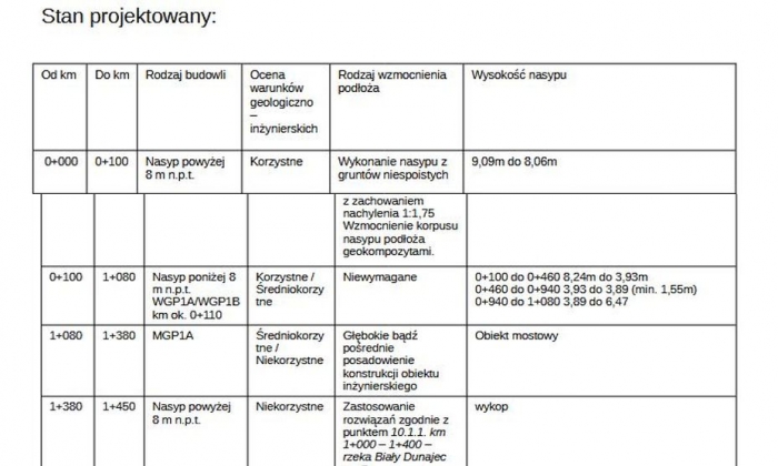 • Odcinek od 0+940 do 1+080 - wysokość wyniesienia odcinka 3,89 mnpt do 6,47 mnpt - wykonanie konstrukcji na estakadzie