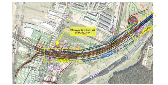 - zmiana sposobu obsługi relacji na Zakopane - Krościenko, poprzez wybór wariantu W1 (tj. wykonanie łącznicy LPW1 wraz z wiaduktem WŁ1C) oraz wprowadzenie zmiany miejsca włączenia łącznicy LLW1 do drogi gminnej nr 362763K (równoległa do ul. Szaflarskiej).