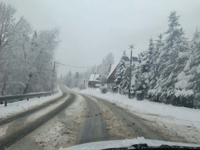 Powrót zimy automatycznie przełożył się na utrudnienia na drogach. Kierowcy informują o fatalnych warunkach. Tak wygląda droga w Bukowinie Tatrzańskiej.