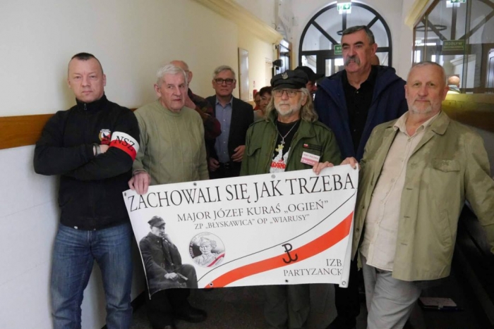 Na piątkowej rozprawie w Sądzie Okręgowym byli m. in. przedstawiciele Stowarzyszenia Wolnych Polaków, Organizacji Międzyzakładowej NSZZ SOLIDARNOŚĆ przy Zarządzie Regionu Małopolska, Ruchu Obrony Granic Kraków, Klubu Gazety Polskiej w Nowym Sączu, Stowarzyszenia Kulturalne Regiony, Nowotarskiej Grupy Mieszkańców "Pamięć", Podhalańskiej Grupy Rekonstrukcji Historycznych "Błyskawica" im .Józefa Kurasia Ognia, Związku Żołnierzy Narodowych Sił Zbrojnych, Stowarzyszenia Dzieci Żołnierzy Wyklętych oraz Stowarzyszenia Podhale w Ogniu.
