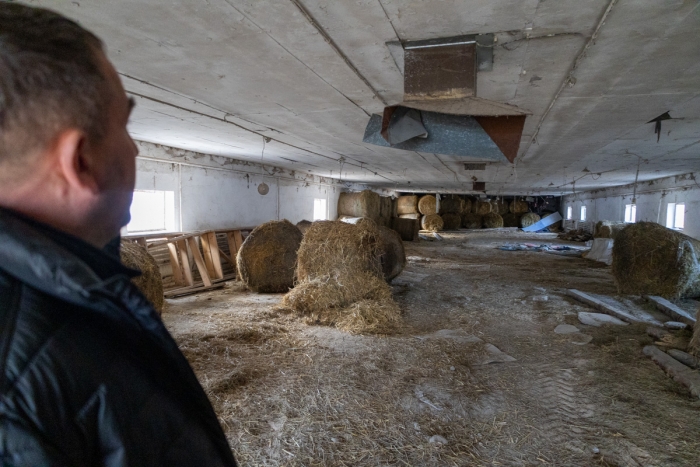 Opowiada, że po ostatniej kontroli inspektora weterynarii musiał wygnać bydło na pola i przystąpić do prowizorycznych prac. Trzeba było zrywać eternit i wyrzucić szmaty. Usuwanie setek kilogramów materiałów z każdego kolejnych obiektów trwało długo. Konieczny był ciężki sprzęt i wielu pracowników. Udało się "wyczyścić" z sufitów i szmat dwa kurniki, eternitowy dach pozostał na wszystkich. Symbolem stanu obiektu są skrzynki elektryczne z bezpiecznikami i kablami, po których skapuje woda z dziurawych dachów.