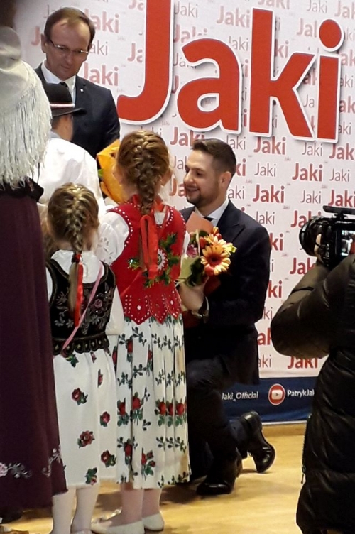NOWY TARG. Na otwarte spotkanie z ministrem Patrykiem Jakim przyszło kilkadziesiąt osób. Wizyta w Mieście była jednym z przystanków na mapie dwudniowej wizyty kandydata do PE. W Nowym Targu przywitano go oklaskami, uściskami, muzyką i oscypkiem. Nie obeszło się bez zamieszania. Jedna osoba próbowała zakłócić wystąpienie polityka.