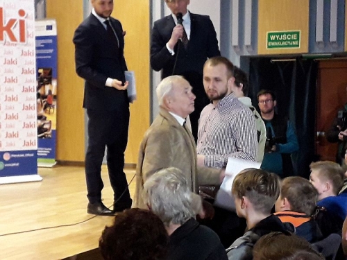 - Mnie pan może nie szanować, ale proszę uszanować innych ludzi na tej sali. Proszę się nie awanturować, każdy mam prawo zadać pytanie - apelował Patryk Jaki. - Na swoim spotkaniu może pan krzyczeć ile pan chce, ale teraz pan przeszkadza innym ludziom - kontynuował, bowiem krewki mężczyzna nie zamierzał odpuścić. Dopiero głośna propozycja jaka padła z sali: "uspokój się, bo tam zejdę do ciebie, chłopie" - poskutkowała.