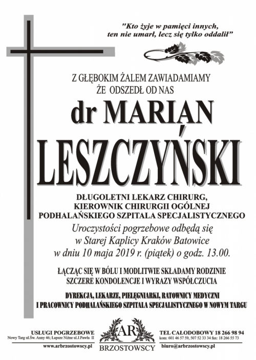 Pogrzeb doktora odbędzie się 10 maja o godz. 13 w Starej kaplicy Kraków Batowice.r/