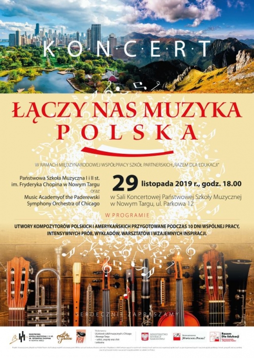 NOWY TARG. Projekt „Łączy nas Muzyka Polska”, finansowany przez Ministerstwo Edukacji Narodowej w ramach konkursu "Rodzina polonijna", oparty jest na współpracy dwóch szkół muzycznych: w Polsce - Państwowej Szkoły Muzycznej I i II stopnia w Nowym Targu, a w Stanach Zjednoczonych – Akademii Muzyki PaSO w Chicago.