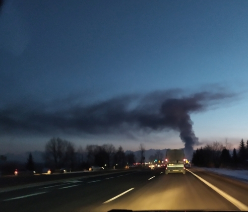Od godzin popołudniowych płonie magazyn Pakfolu niedaleko stacji kolejowej PKP (za dawną narciarnią). Z budynku wydobywają się kłęby czarnego dymu.