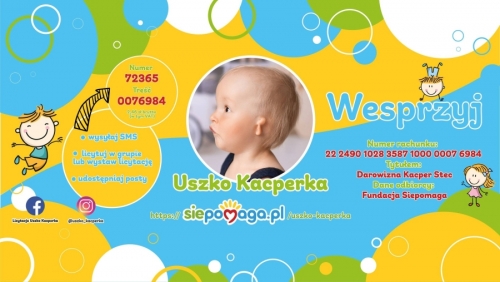 Chłopczyk urodził się z lewostronną mikrocją - niewykształconą małżowiną uszną oraz atrezją - zrośniętym kanałem słuchowym lewego ucha. Od sierpnia 2020 roku rodzice - chwytając się wszelkich sposobów - zbierają pieniądze na operację w USA, co - zwłaszcza w dobie pandemii - jest bardzo trudne. W Polsce wieloetapowe leczenie Kacperka mogłoby się zacząć dopiero, gdy dziecko skończy 10 lat. - Nie możemy pogodzić się z myślą, co nasz synek straciłby przez ten czas. Jak wiele okazji na rozwój pozostałoby dla niego - już na zawsze, nieosiągalnych - dodaje Anna Stec. - W klinice w Stanach Zjednoczonych wszystkie czynności wykonywane są podczas jednej operacji, której plan zakłada rekonstrukcję ucha, otwarcie kanału słuchowego bądź wszczepienie specjalistycznego implantu. Jedna narkoza to znacznie mniejsze obciążenie dla młodego organizmu, a operacja mogłaby się odbyć po 3. urodzinach naszego synka. To nasza nadzieja na przyszłość, na ratunek i powierzenie naszego dziecka w ręce najlepszych specjalistów.