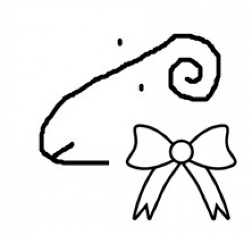 Rysunek 1: Owca Dżoana. Nawiązuje do symbolu MOK. Tyłek odcięty. Owca wiadomo. Podhale. Brak jodu. Owczy pęd. Ale ma wstążkę. Wstążka kryje wszystkie niedostatki. Podnosi poziom.