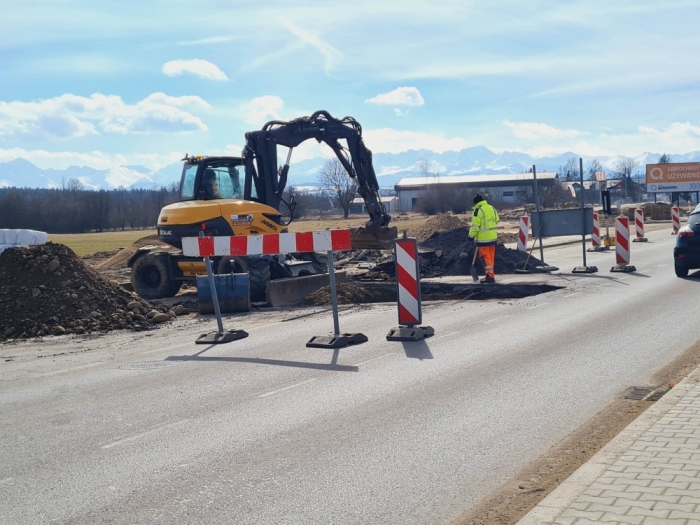NOWY TARG. Jedna nitka ulicy Szaflarskiej, w rejonie salonu Jędruś i sklepu Decatlon, była dziś zamknięta, a przejazd wahadłowy był sterowany przez tymczasową sygnalizację świetlną. Robotnicy zagrodzili jezdnię wjazdową do miasta i wycięli asfalt.
