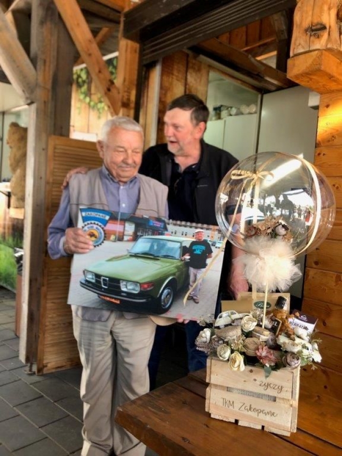 Pretekstem do spotkania z gospodarzami nowotarskiej Targowicy była niecodzienna uroczystość: 85 urodziny najstarszego członka Klubu, Aleksandra Topy, nota bene ojca popularnego aktora, wywodzącego się z Nowego Targu, Bartłomieja Topy. Kolekcjoner starych SAAB-ów był wyraźnie wzruszony niespodzianką, jaką zgotowali mu klubowi koledzy…Wśród pasjonatów starych samochodów nie brak leciwych posiadaczy weteranów szos; niewiele młodszy jest pan Mieczysław Król czy Zygfryd Marszałek. Trzech seniorów ma w sumie ponad 250 lat!