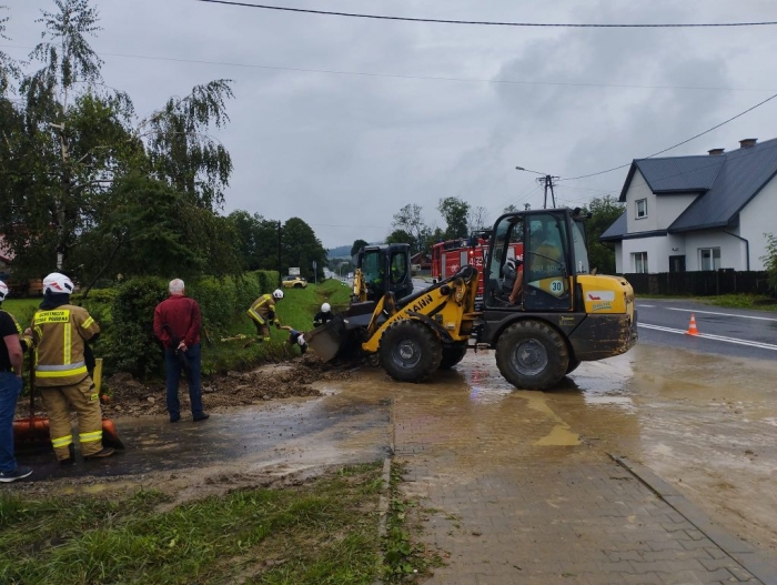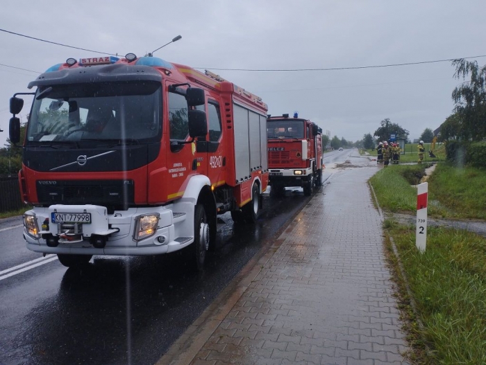 Na miejsce wezwano strażaków z OSP, którzy udrożniają przepust. Jeden pas drogi został chwilowo zablokowany. Poniżej - zdjęcia OSP Spytkowice