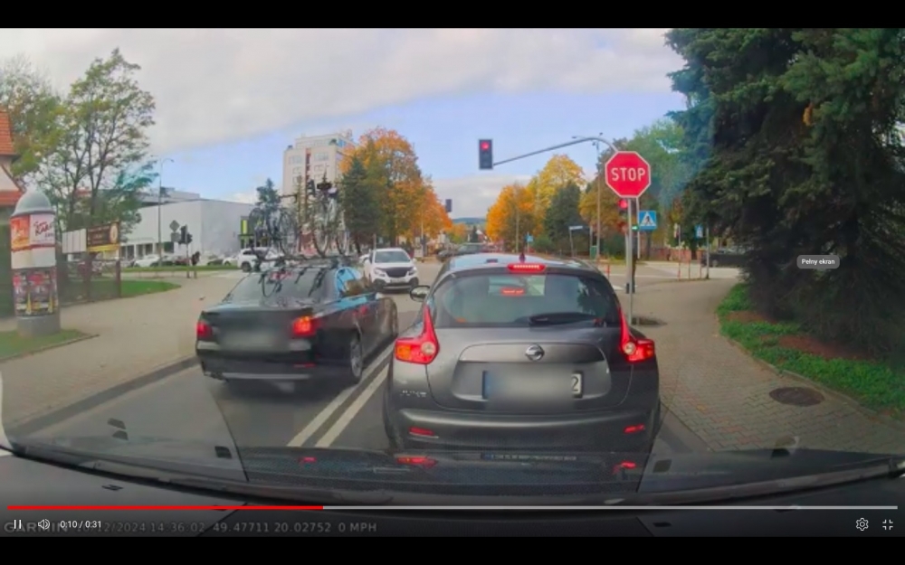 Cały Nowy Targ stał wczoraj w korku. Jeden z kierowców stracił cierpliwość i na podwójnej ciągłe, pod prąd i wymuszając pierwszeństwo na prawidłowo jadącym samochodzie ominął czekającą przed światłami kolejkę samochodów.