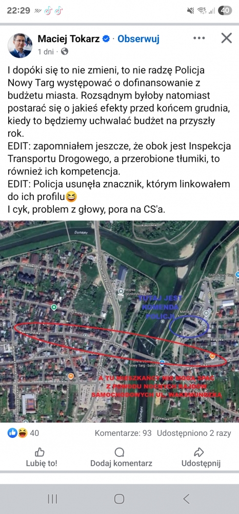 Jak tam obwodnica Panie Tokarz? Pajacować to Pan może na facebooku. Nie jest Pan czasem radnym? Zajmij się swoją robotą i idź na policję i itd, a nie facebooki. Do roboty!!!