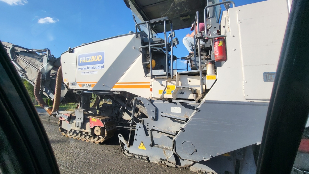 Frezowanie drogi wojewódzkiej 969 pomiędzy Ostrowskiem , a Łopuszna. Ruch wahadłowy .Tworzą się korki