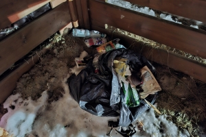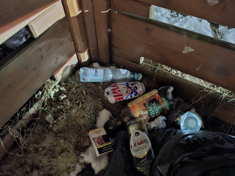 Przesyłamy zdjęcia z trasy narciarskiej Obidowa, śmieci ktore zastaliśmy kilka dni temu na polanie Kałuża,nikt nie zadbał aby je posprzątać,zagrażają zwierzętom,oraz trasa ratrakowana po glinie,tak dba się o sprzęt ratrak