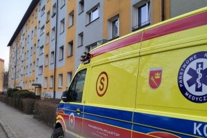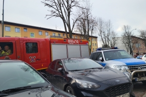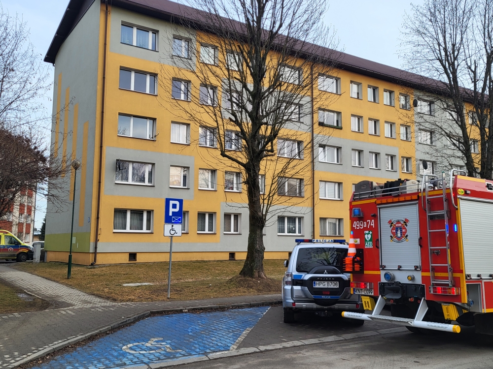 Straż Pożarna OSP Nowy Targ, policja i karetka pogotowia na Kopernika, w związku z akcją otwarcia mieszkania.