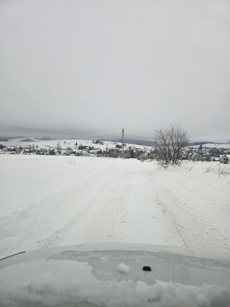 Droga Morawczyna Dział jest nieodśnieżona Ciężko jest się ominąć
