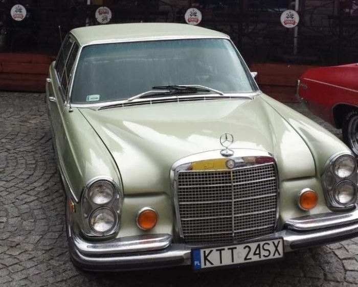 Z Ameryki przywędrował pod Tatry Mercedes W108 z końca produkcji modelu w 1971 roku. Ten czterodrzwiowy sedan z prawie 200 konnym silnikiem V8 4,5, który rozpędzał go do setki poniżej 10 sekund, na tamte czasy był na topie luksusowych limuzyn, także dzięki eleganckiemu designowi spod ręki francuskiego stylisty, Paula Bracqa.