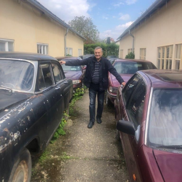 Na posesji upchanych jest ponad 70 starych samochodów, w garażach i pod gołym niebem, w większości kompletnych i na chodzie. Są to przeważnie eksponaty z końca ubiegłego wieku, niemal wszystkie wynalazki demoludów, ale także i klasyki z Europy Zachodniej, spora część to limuzyny amerykańskie. Ale nie brak też prawdziwych oldtimerów; wśród nich prym wiedzie piękny, zielony Chevrolet National z 1928 roku, którym pan József wyjeżdża na ulice miasta w dzień świętego Mikołaja i z pięknie podświetlonego automobilu rozdaje dzieciom słodycze.