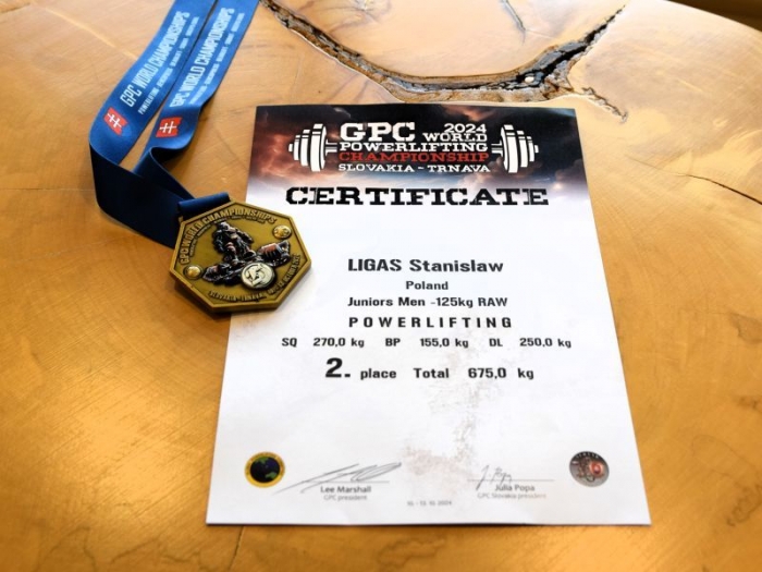 Stanisław Ligas z Zakopanego na Mistrzostwach Świata Federacji GPC w Trnavie zdobył 2. miejsce w trójboju siłowym w kategorii Juniorów do 125 kg.