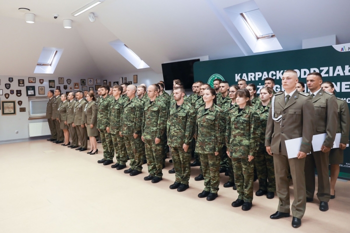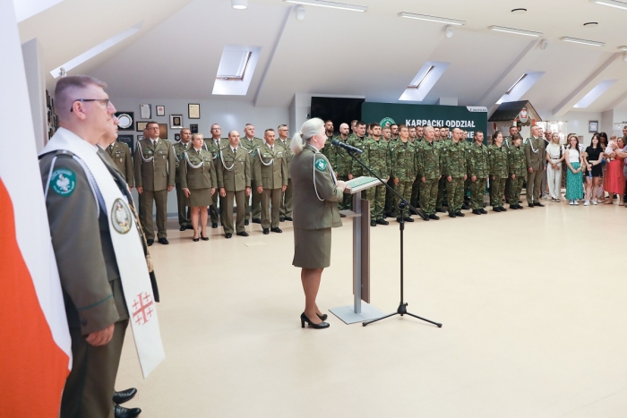 Rotę ślubowania od 7 kobiet i 21 mężczyzn przyjęła Zastępca Komendanta Karpackiego Oddziału Straży Granicznej - płk SG Renata Obrzut, która pogratulowała ślubującym wyboru drogi życiowej i życzyła sukcesów w służbie. Adeptów czeka teraz krótkie szkolenie podstawowe w Karpackim Oddziale SG, a następnie udadzą się do Ośrodków Szkolenia Straży Granicznej na II część szkolenia podstawowego oraz bezpośrednio po nim następujące szkolenie w zakresie szkoły podoficerskiej.