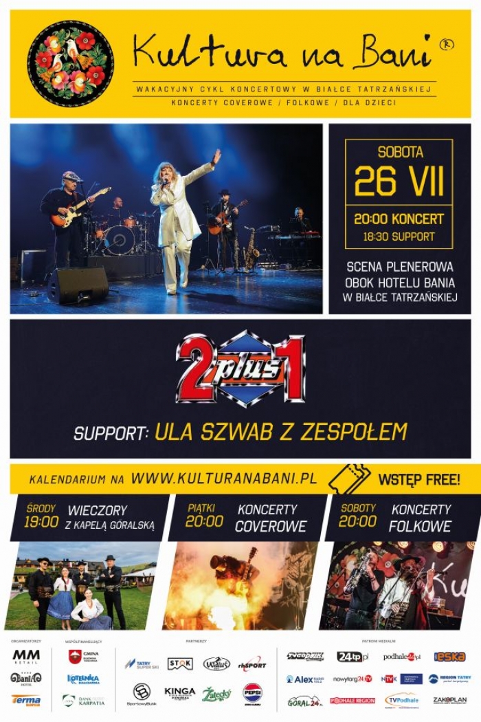 W sobotę o 18:30 na scenie Kultury na Bani wystąpi Ula Szwab z zespołem, a już o godzinie 20:00 rozpocznie się koncert legendarnego zespołu 2 plus 1!