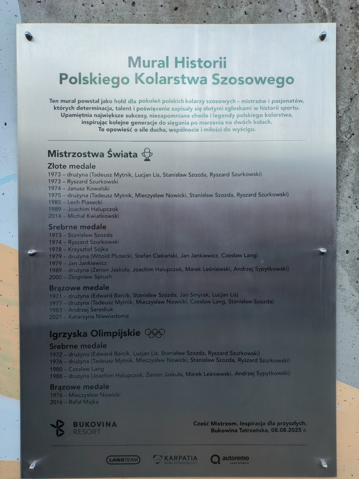 Tegoroczny Tour de Pologne w Bukowinie Tatrzańskiej zyskał także artystyczny akcent. Na dużej betonowej ścianie oporowej przy hotelu Bukovina, dotąd niezauważanej przez przechodniów, powstał kolorowy mural upamiętniający najpiękniejsze momenty w historii polskiego kolarstwa.