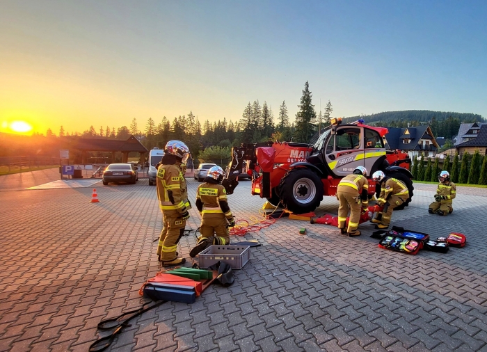 KOŚCIELISKO. "Jakiś czas temu zrobiliśmy sobie przypomnienie z podnoszenia pojazdów na bazie quada. Ostatnio wróciliśmy do tej tematyki, tym razem z nieco większym ciężarem w postaci ładowarki teleskopowej" - opisują niedawne szkolenie strażacy z OSP Kościelisko.
