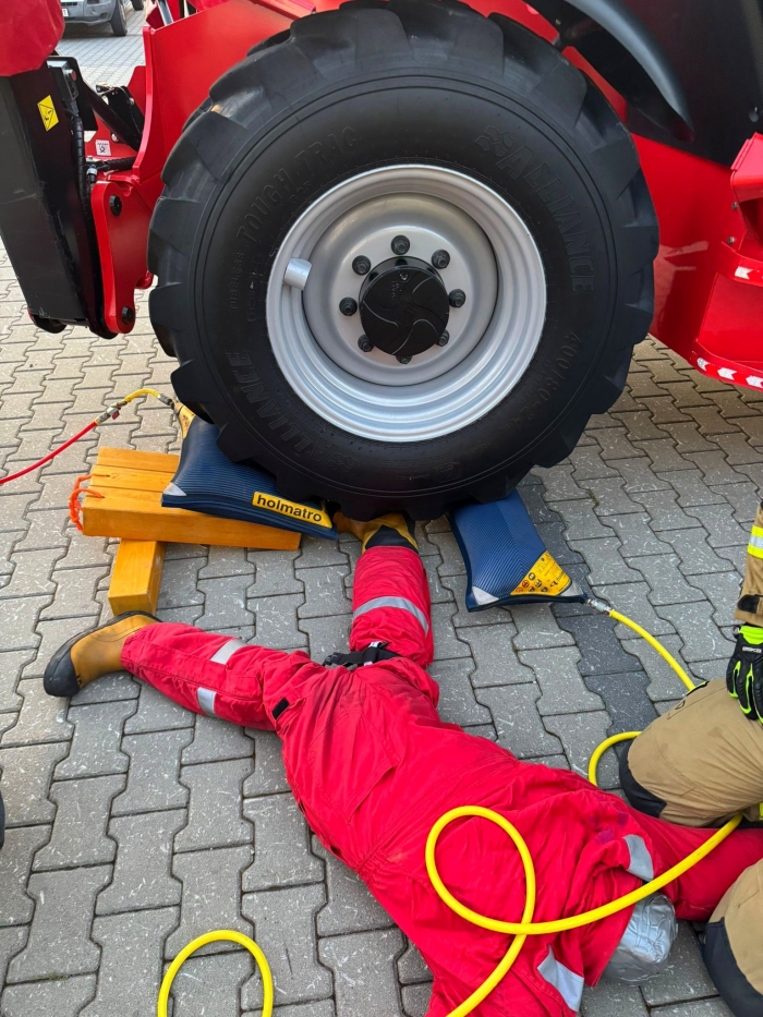 Scenariusz zakładał pomoc osobie, która została przejechana i unieruchomiona kołem pojazdu.Przećwiczono podnoszenie pojazdy trzema metodami - rozpieraczem ramieniowym i poduszkami wysokociśnieniowymi za elementy konstrukcyjne oraz poduszkami z dwóch stron koła. "Przy każdej z metod omówiliśmy wady, zalety oraz istotne kwestie, na które trzeba zwracać szczególną uwagę" - podsumowują ćwiczenia druhowie.