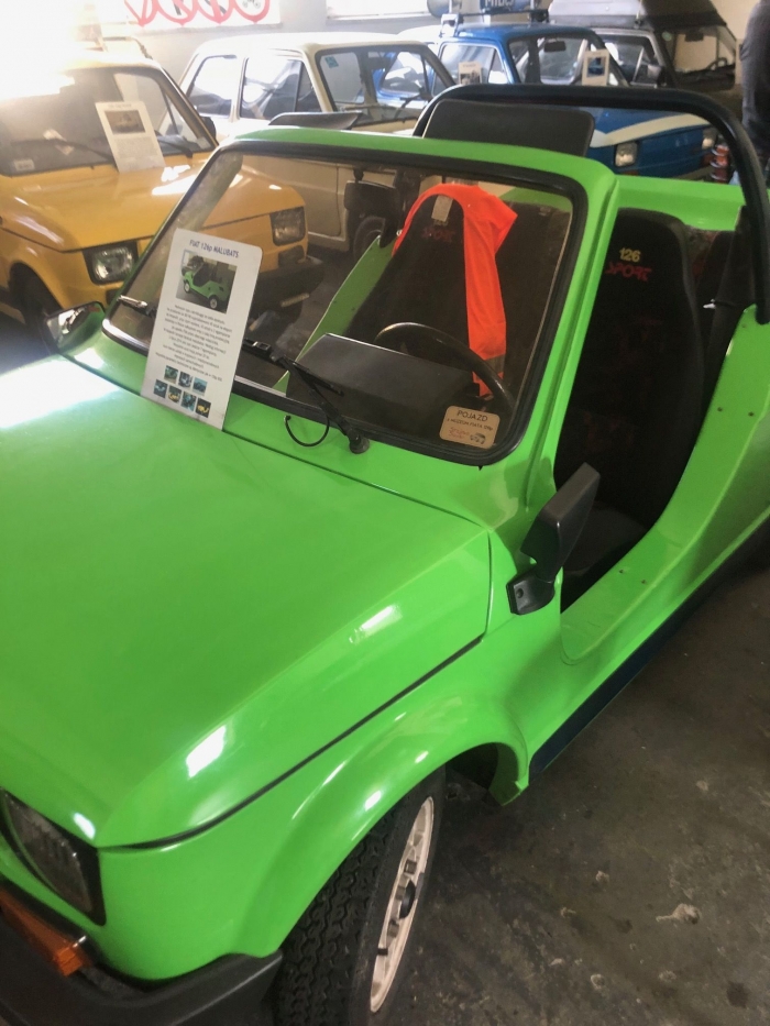 Już od wejścia podziw budzi wojskowa wersja 126p 650; ten trzyosiowy egzemplarz jako pojazd doświadczalny służył w latach 1979-80 w formacji powietrzno-desantowej, mógł zabrać na pokład 6 żołnierzy i nosze. Inny "wojak" jest aktualnie w renowacji; pojazd z Oficerskiej Szkoły Łączności w Zegrzu miał możliwość instalowania płóz i gąsienic, w zależności od warunków drogowych!