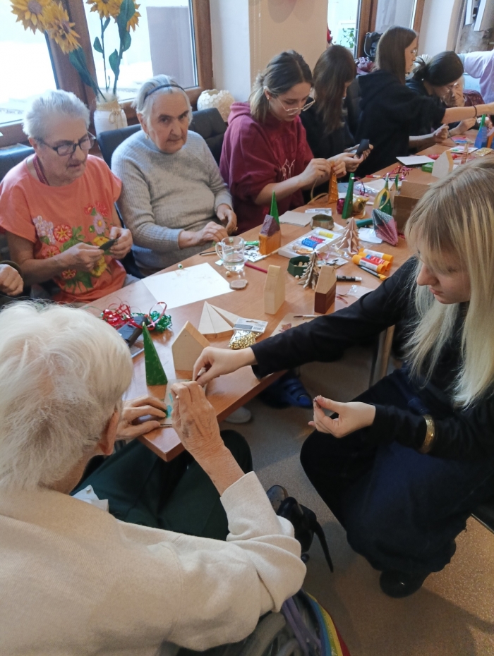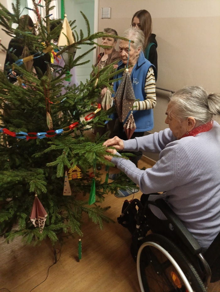 Choinkę oraz materiały do przygotowania ozdób jak zwykle podarowało Nadleśnictwo Nowy Targ, a tym razem do projektu zaprosiliśmy uczennice z Liceum Plastycznego im. Antoniego Kenara wraz z wychowawczynią Panią Agnieszką Rokicką. Młodzi uczestnicy z dużą otwartością i życzliwością wspierali seniorów w dekorowaniu choinki - razem tworzyli ozdoby, wymieniali się pomysłami i współpracowali w atmosferze wzajemnego zrozumienia, realizując ideę prawdziwego dialogu pokoleń. Spotkanie seniorów z młodzieżą to nie tylko cenne doświadczenie, ale także szansa na wzajemne zrozumienie i budowanie wspólnych tradycji. Serdecznie dziękujemy wszystkim uczestnikom za obecność i zaangażowanie.oprac. r/ źródło: Pedagogiczna Biblioteka Wojewódzka Filia Zakopane