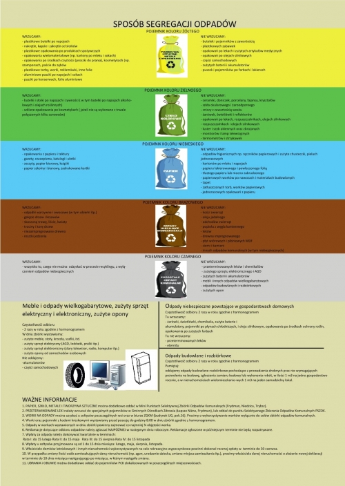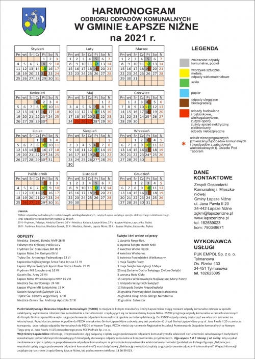 Poniżej zamieszczamy harmonogram odbioru odpadów w gminie Łapsze Niżne.