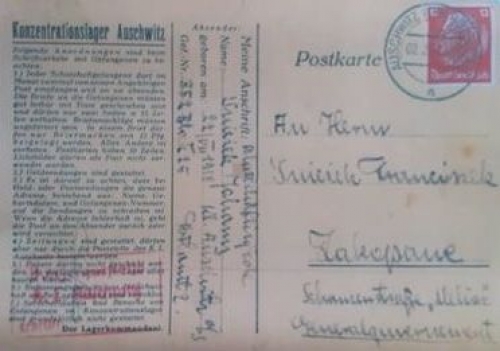 Przypomnijmy, że niemiecki obóz koncentracyjny Auschwitz został założony w celu eksterminacji narodu polskiego. Za moment rozpoczęcia jego „działalności” przyjmuje się przybycie pierwszego transportu 728 Polaków przywiezionych z więzienia w Tarnowie, dnia 14 czerwca 1940 roku. Sprowadzano ich z różnych więzień, w tym również ze słynnej katowni Podhala – Palace, która mieściła się w Zakopanem. Transport ten stanowili w znacznej części uczniowie gimnazjum, studenci i wojskowi. Znajdowali się również architekci, artyści malarze, rzeźbiarze, przewodnicy górscy, czy też sportowcy. W I transporcie do KL Auschwitz znalazł się Jan Śnieżek z Zakopanego. Jak wspomina Pan Maciej Kowalski, Jan wraz ze swoim bratem Franciszkiem pochodzili z domu „Melior”, który istnieje do dziś. W przesłanym liście Jana Śnieżka widnieje jego data urodzenia, numer obozowy i adres.
