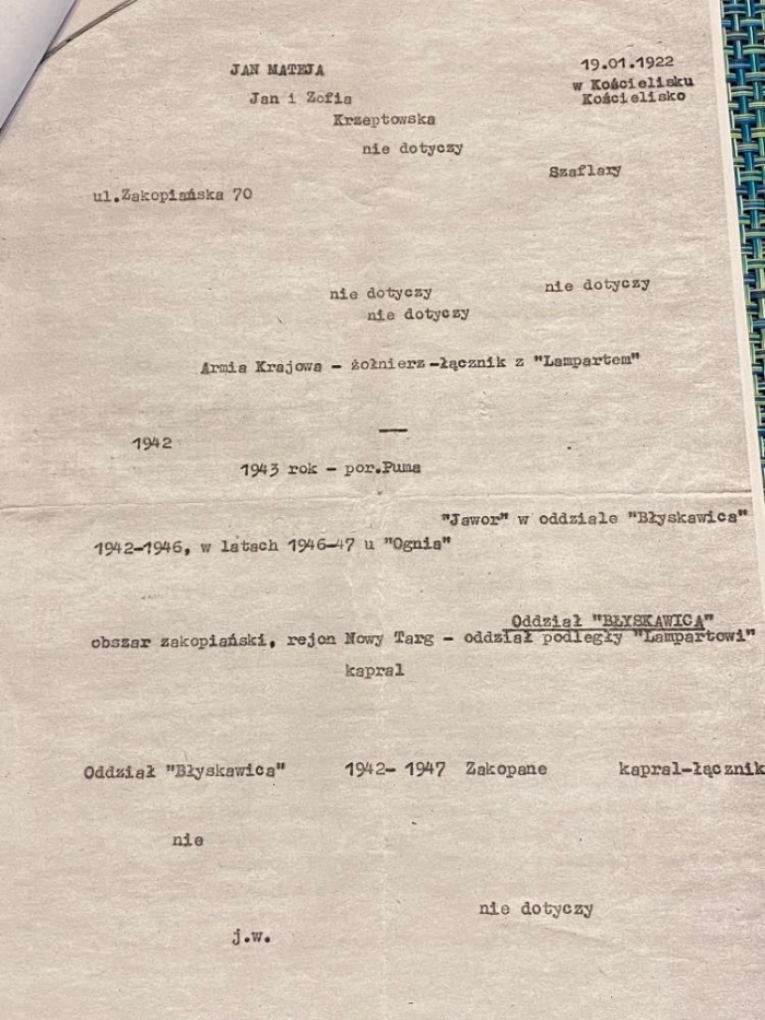 Poznajcie Jana Mateję Torbiarza ps. Jawor. Urodził się w 1922 roku w Kościelisku. Tam za młodych lat nawiązał wiele przyjaźni, które przetrwały wojnę oraz ciężki okres sowieckiej okupacji.