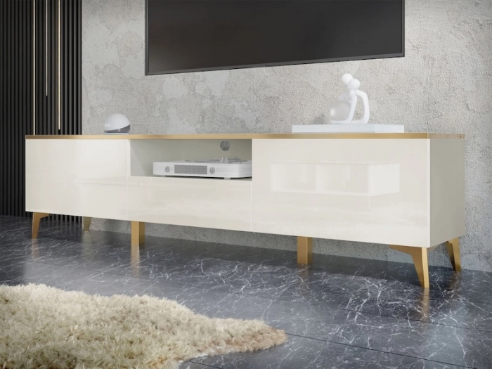 Dodatkowo kolor i wykończenie mebla mają ogromny wpływ na ostateczny efekt. Biała opcja wprowadzi świeżość, czarna - elegancję, a szafka RTV kaszmirowa nada wnętrzu przyjemnej miękkości i subtelności.