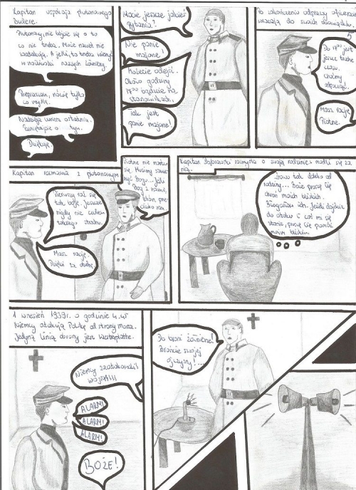 Justyna w swojej pracy przedstawiła historię związaną z obroną Westerplatte, widzianą przez pryzmat jednego bohatera tj. kpt. Franciszka Dąbrowskiego, potomka przedwojennego generała.