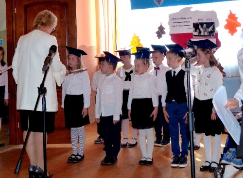 Po części artystycznej odbył się akt pasowania pierwszoklasistów dokonany przez dyrektora placówki Beatę Kowalską.