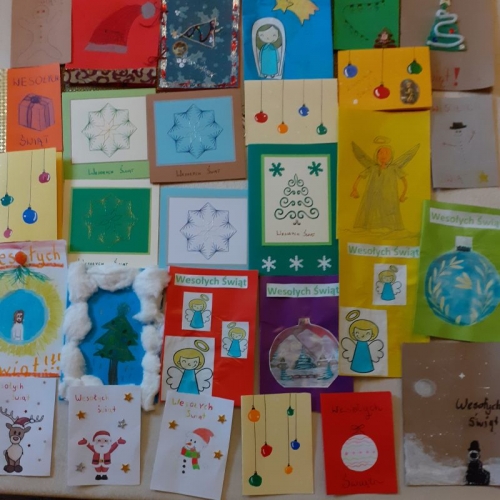 Co roku uczniowie szóstki jechali do zaprzyjaźnionego domu Pomocy Społecznej „Smrek” w Zaskalu z przedstawieniem jasełkowym. W tym roku ze względu na sytuację związaną z epidemią nie mogli jak co roku złożyć wizyty pensjonariuszom, stąd też pomysł, aby dla wszystkich mieszkańców Domu przygotować świąteczne kartki z życzeniami. Uczniowie wykonali ponad sto kartek, które zebrała siostra Iwona, która przekaże je podopiecznym z Domu Pomocy Społecznej z najlepszymi życzeniami od całej społeczności Szkoły Podstawowej nr 6.