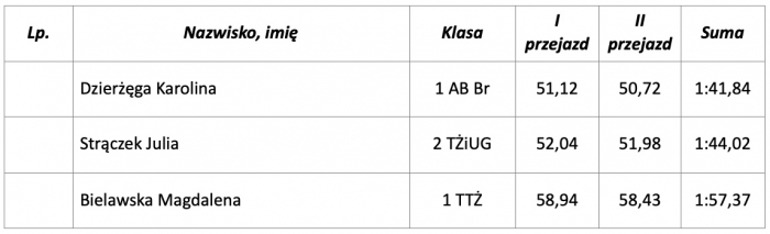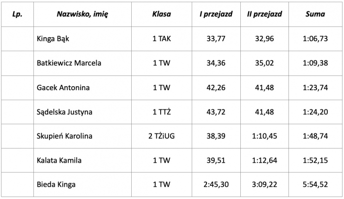 Po rocznej przerwie związanej z obostrzeniami, ponownie udało się nam przeprowadzić zimowy dzień sportu. Warunki sprzyjały - piękna słoneczna pogoda, doskonale przygotowany stok i możliwość spędzenia ostatniego dnia nauki on-line na świeżym powietrzu z dala od monitorów i ekranów.Zawody odbyły się na stoku narciarskim „Długa Polana” w Nowym Targu. Młodzież rywalizowała w czterech konkurencjach:snowboardowy slalom gigant dziewcząt, snowboardowy slalom gigant chłopców, narciarski slalom gigant dziewcząt i narciarski slalom gigant dziewcząt.